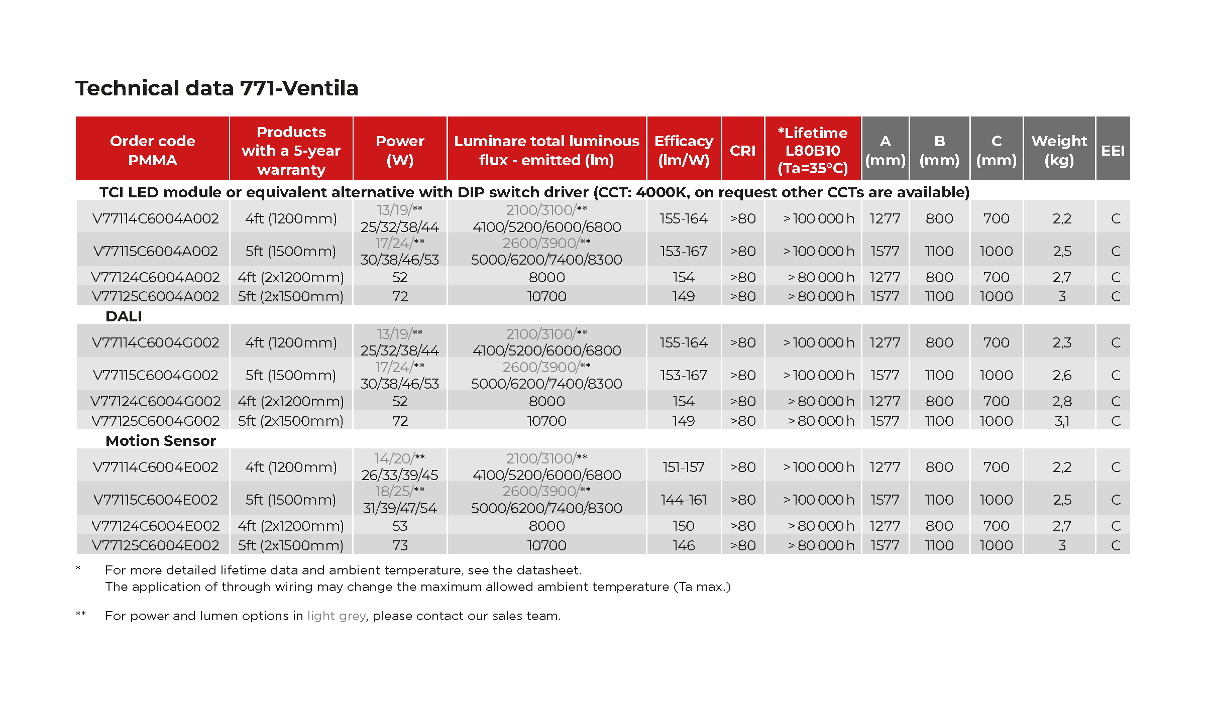 771-Ventila is available in the following sizes: 1x600mm, 1x1200mm, 1x1500mm, 2x600mm, 2x1200mm, 2x1500mm